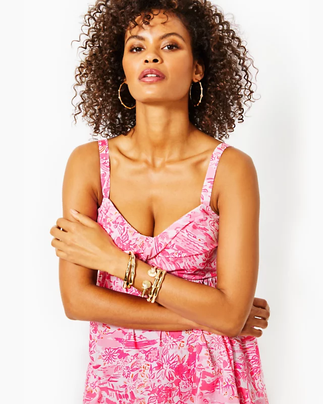 Breeze through summer in the perfect midi sundress, made from lightweight cotton poplin in a spirited print. The Azora Dress is a fit-and-flare style with wide adjustable straps, a twist-front bodice, side seam pockets, and a smocked back panel for a comfy fit.