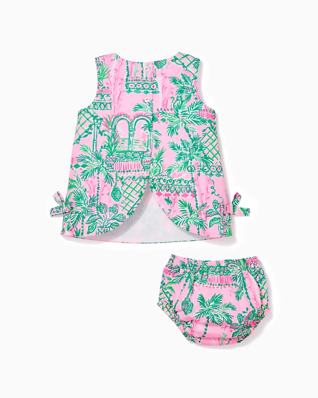 Your mini’s first Lilly shift is a special occasion, so we made sure our infant version of this classic is as pretty and vibrant as the one you wear. The iconic shift silhouette shines thanks to designer touches, including lace trim details, a button-back closure, hem bows, and matching bloomers. Best of all, you can wear the same Lilly print as your little one.
