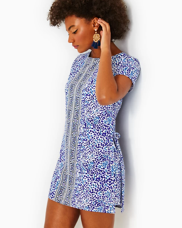 Who doesn’t love a stretch romper? This sunny short-sleeved style gets the Lilly treatment with a bright, fun engineered print and sassy side slits. Oh-so comfy and oh-so cute, it’s a great way to dress for the day and then head out for a night on the town.