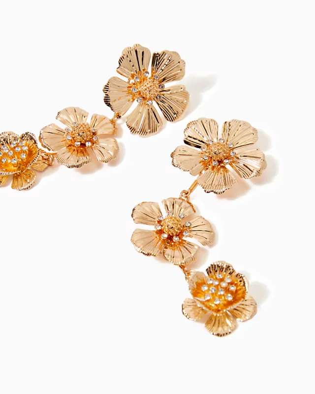 Accent your look with a trio of textural blooms courtesy of these golden statement earrings.