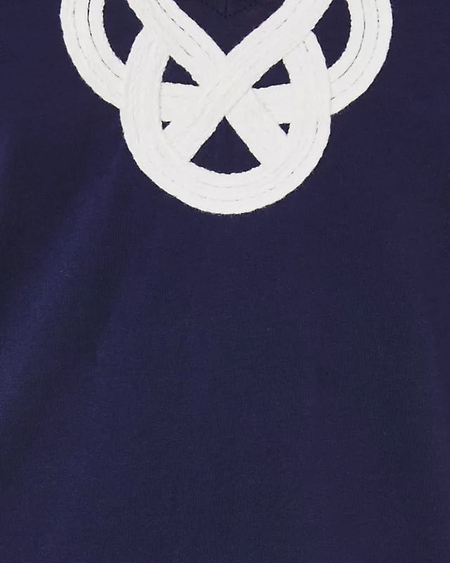 Sure to be your new everyday favorite, the Brewster Dress is an easy cotton jersey design with short sleeves and intricate artwork at the neckline.
