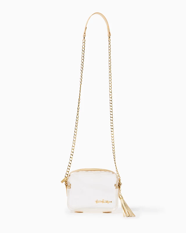 - Clear Crossbody With Gold Saffiano Details.