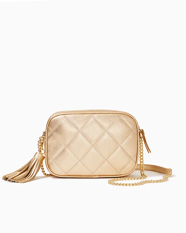 A timeless plus-one for every festive occasion, this shrunken leather crossbody bag features quilted detailing, a chain strap, and a leather tassel charm.