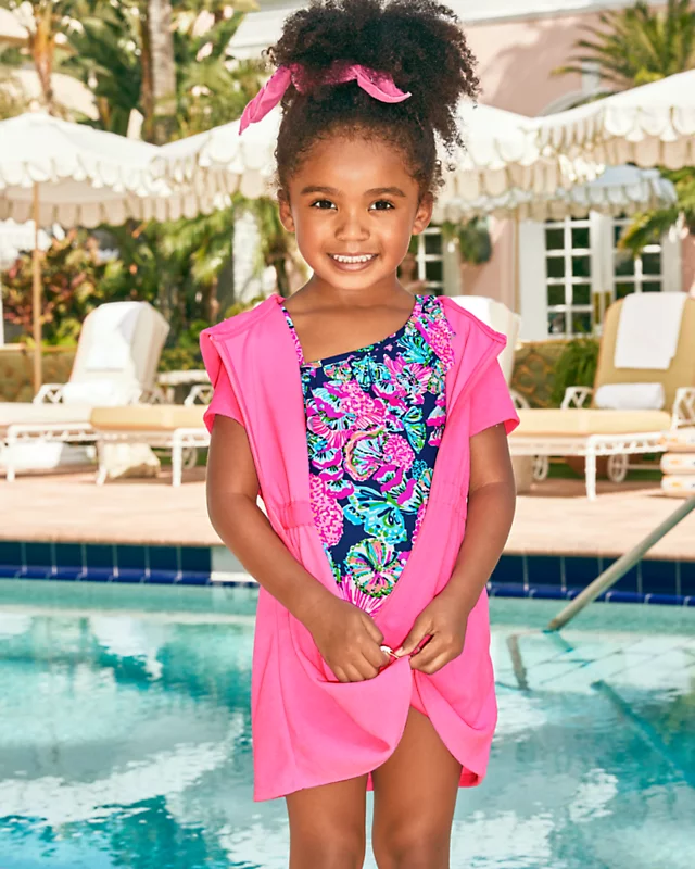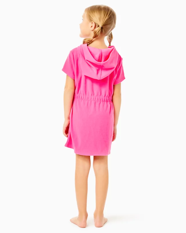 Your little one will love wearing our Girls Chaplin Cover-Up at the beach or pool. This cuddly terry style features an elastic waist, hood, and center front zipper.