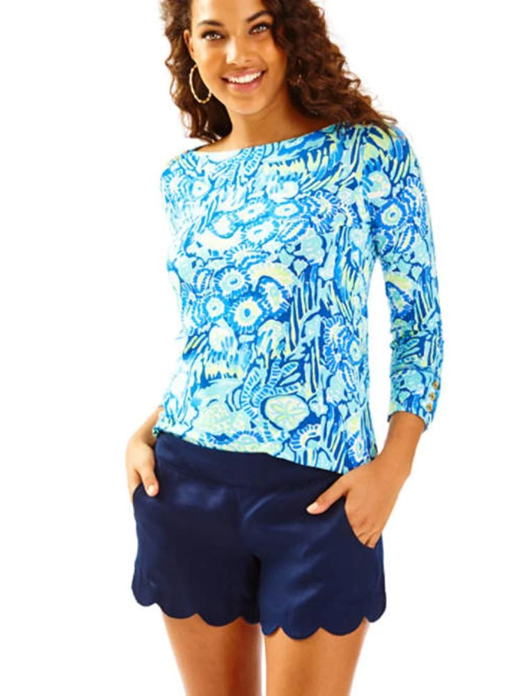 The Dahlia Short has a 4 inch inseam and a scallopped hem. You’ll love this soft flat front short if you’re looking for a shorter option of your favorite Lilly scallopped shorts.