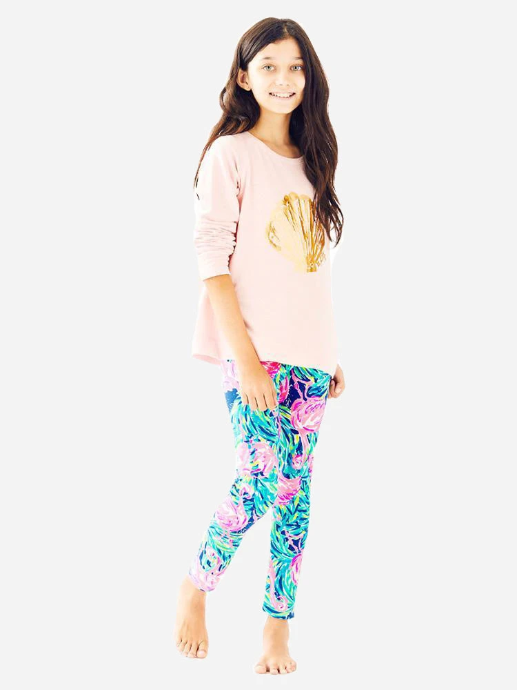 The Lilly Pulitzer Girls’ Shara Sweatshirt pairs perfect with her favorite legging.