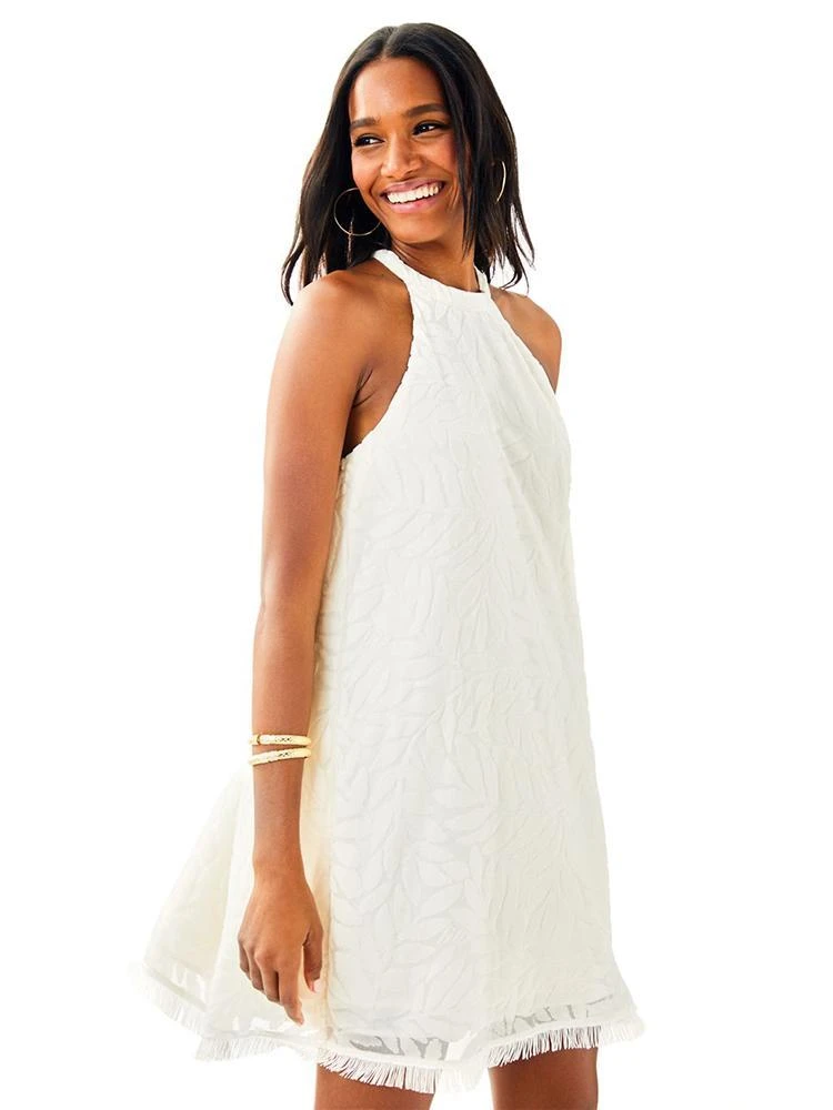 The Lilly Pulitzer Quinn Dress has a halter neck with a swing hemline.