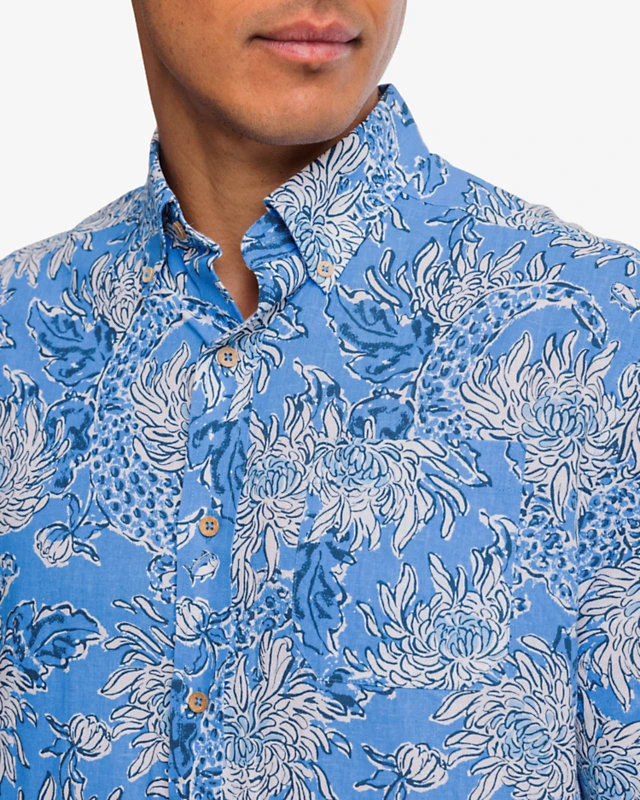 - Button down collar, left chest pocket and authentic Southern Tide branded coconut buttons.